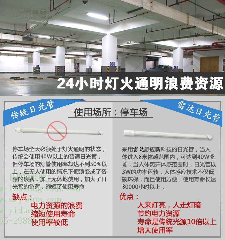微波雷達感應led燈管T8一體化雷達led燈管,又叫雷達感應led燈管,地下停車場的微波T5LED日光燈照明三種解決方案微波雷達感應led燈管分T8/T5一體化微波雷達led日光燈